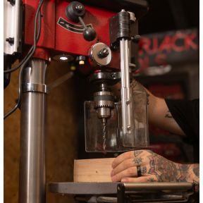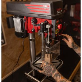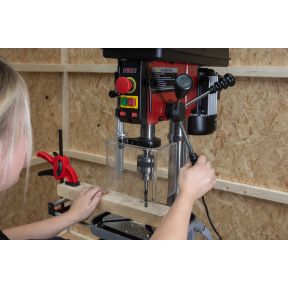 The Lumberjack DP16-910B-VS Professional bench pillar drill is powered by a smooth running 550W motor. The switch system has a separate locking emergency stop switch, plus there is a switch for the integrated LED work light and cross laser. The drill press also boasts a digital speed display and table extension. This professional rated bench drill press offers a whole lot more than the normal but is still compact in size.