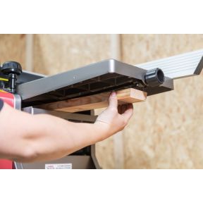 This is an excellent Planer Thicknesser for hobbyist and small workshop use. Powered by a belt driven 1500W motor the machine and balanced cutter block house two resharpenable HSS blades. Rotating at 8500rpm you can achieve an extremely fine, ripple free finish on both hard and softwoods.