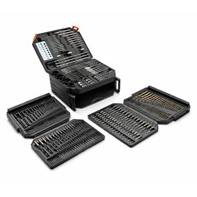 Lumberjack Drill Bit Set 205 Piece HSS Masonry Metal Wood Flat Pozi Bits & Case